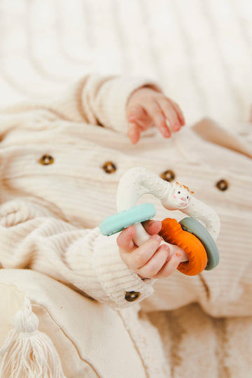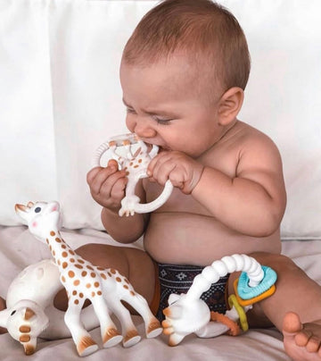 From soothing teethers to playful bath toys, early learning treasures, mealtime essentials and thoughtful gift packs, our range is created with love and care to support your little one’s growth. Each piece featuring Sophie la girafe is made to bring comfort, curiosity and joy, while giving parents peace of mind with safe and natural materials.