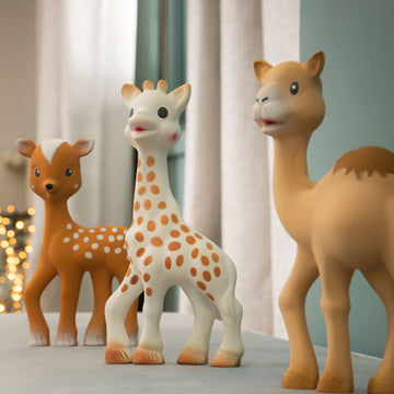 From soothing teethers to playful bath toys, early learning treasures, mealtime essentials and thoughtful gift packs, our range is created with love and care to support your little one’s growth. Each piece featuring Sophie la girafe is made to bring comfort, curiosity and joy, while giving parents peace of mind with safe and natural materials.