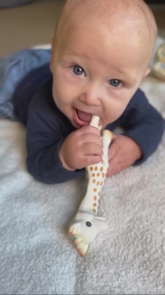 Sophie is made from 100% natural Hevea tree rubber and coloured with food-grade paint, so she deserves a little extra care. Store her in a cool, dry place away from direct sunlight and heat sources to preserve her softness and colour. With the right care, Sophie will stay your baby’s favourite teething companion for many months to come.