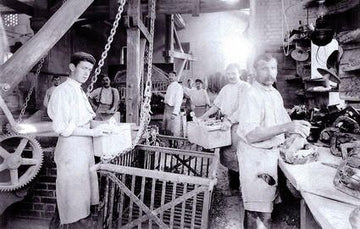 Below images (left) Original factory (1961), (right) See the Sophie la girafe’s being made back in 1961.