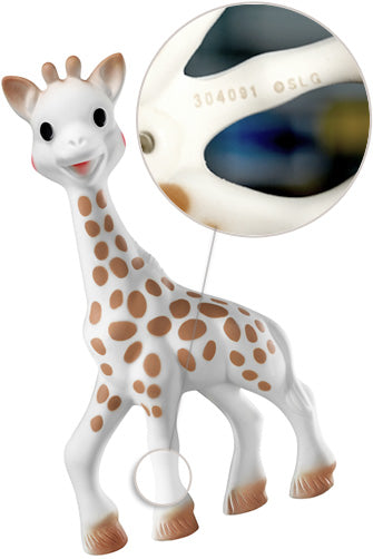 Vulli has only one requirement, that is providing the very best to our customers. We have even gone one step further in terms of the quality that goes into the 100% natural rubber Sophie la girafe. In fact, since July 2011, each Sophie la girafe produced has a batch number printed on the back of a leg, enabling full product traceability (production date and relevant laboratory analysis).